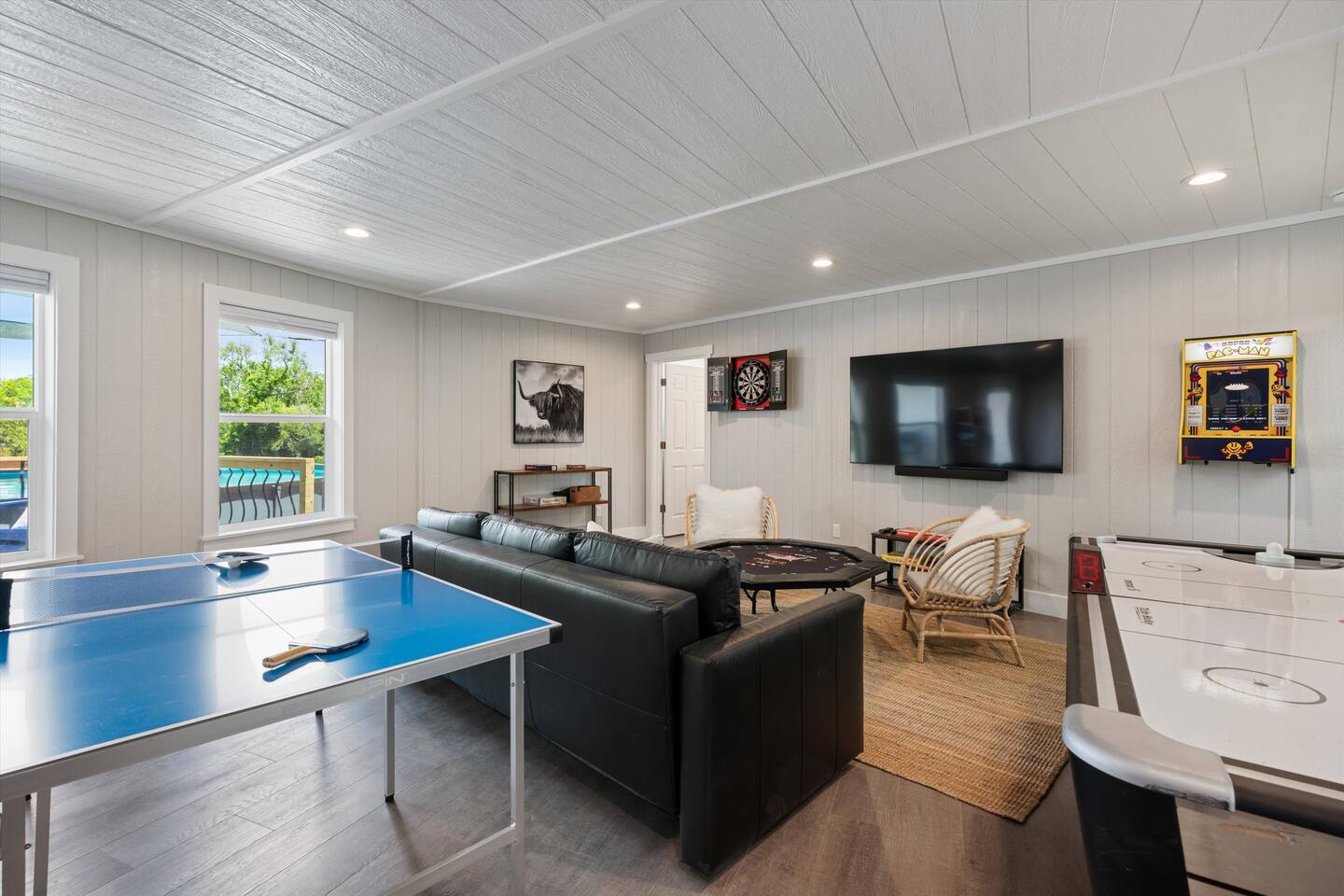 Welcome to Peaceful Waters Retreat, only 1 hour from Austin and 2 hours from Houston. Tons of nature & amenities: Lake, game room, pool, sauna & gym, fishing, hiking & biking, and more! This newly renovated ranch house is outfitted to host up to 14 people for an unforgettable stay! Please note, the pool is closed during winter months (Nov-March). Pet friendly, $100 for up to 2 dogs per visit. Please add your pet before booking.