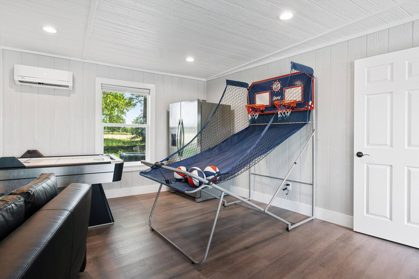 OUTSIDE: - 8 person hot tub overlooking the pond - Lake with rowboat and lots of fish (catch and release fishing allowed)! - Above-ground pool with pool toys & floaties (closed mid-Nov to April) - Large deck w/grill - Fire pit for S’mores! - Abundant wildlife: Deer, herons, frogs, wild turkeys, and even a family of river otters live nearby! - Meet our equine, bunnies, goats, and chickens – free tour available! - RV electrical hookup available for extra fee. INSIDE: - Game room featuring air hockey, Pac-Man 10-in-1 arcade game, ping-pong, arcade style basketball, poker table, tons of board games - Dry sauna + steam room - Gym featuring treadmill, weights, TRX, yoga equipment, and more - Lots of additional sleeping space: 4 pull out couches - Newly renovated, with fully equipped modern kitchen with gas stove.