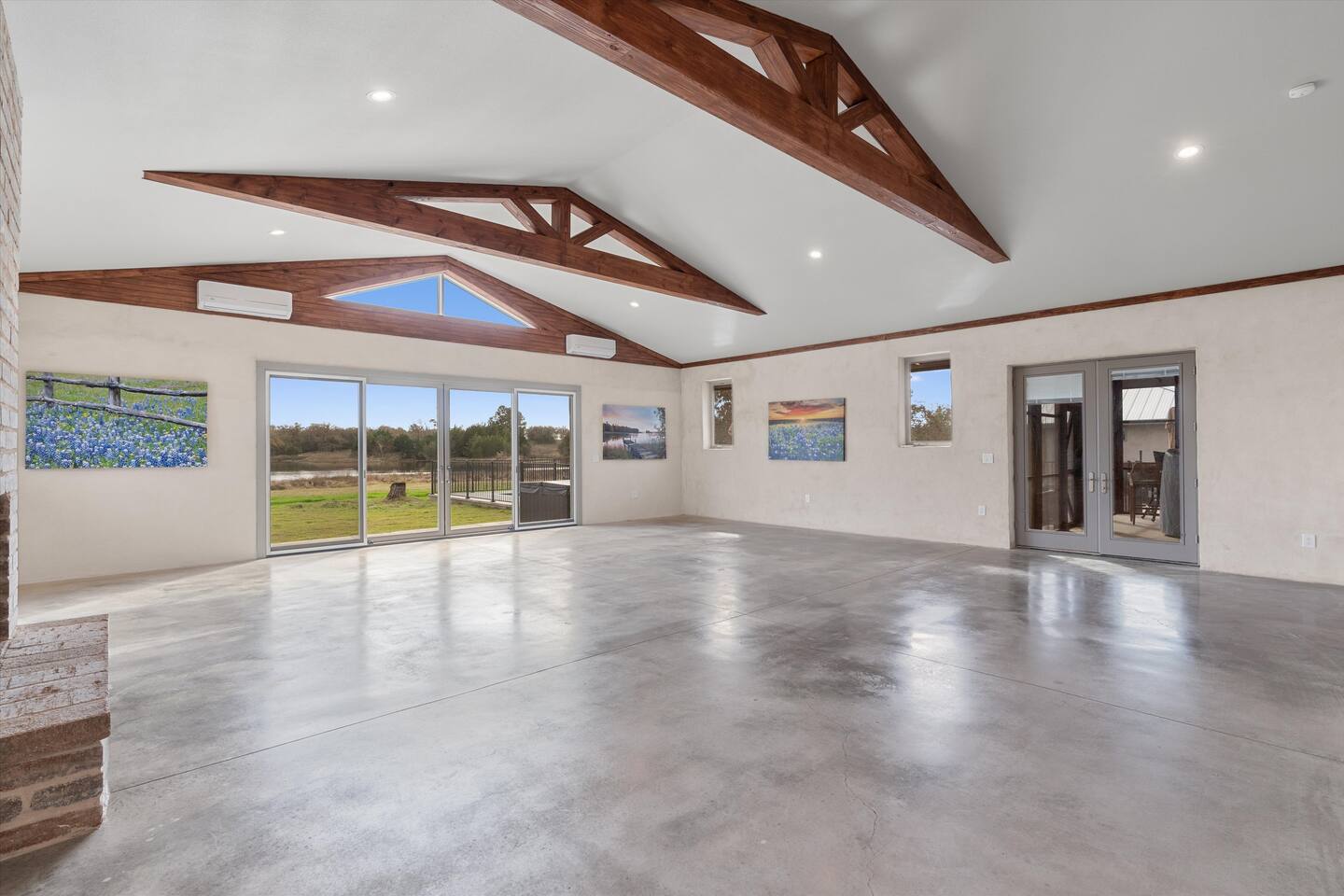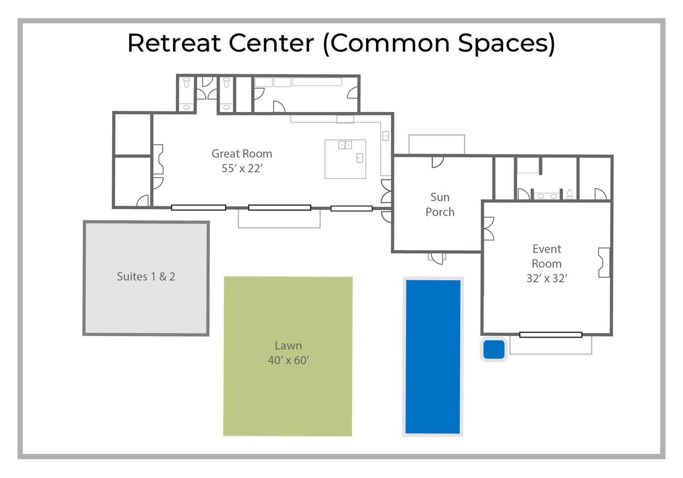 This listing is for a whole property buyout: Retreat Center + Ranch House. For slightly smaller events, check out our listing for just the Retreat Center, sleeping 26+ people. Maps & floor plans available, see the Additional Photos section of the photos. RETREAT CENTER (9,500 ft²) - 8 BR 8 Bath - 24 beds + 6 sleeper sofas - Meeting/yoga room (1100 ft²) - Great Room (dining + kitchen + lounge – 1200 ft²) – Fully equipped professional kitchen, dining seats 40+ - In-ground pool with volleyball and pool toys (pool heating optional: $75) - Family friendly amenities available: Ping pong, arcade game, kids toys, and board games! - 75” TV available upon request - Bounce house available ($75) - 8 person hot tub - Firepit for cozy evenings and s’mores - Spacious patio with grill RANCH HOUSE (2,300 ft²) - 3 BR 4.5 Bath - 6 beds + 4 sleeper sofas - Above-ground pool with pool toys (closed Nov-April) - 8 person hot tub overlooking the pond - Steam room + dry sauna - Gym - Game room - Large deck w/grill - Fire pit for s’mores - RV electrical hookup available for extra fee THE PROPERTY - 53 acres to explore - 5 acre private lake w/SUPs, canoe, and row boat - Catch and release fishing allowed - 2 mi. hiking/biking trails FARM & WILDLIFE - Abundant wildlife: Deer, heron, frogs, wild turkeys, and playful otter families - Meet our equine, bunnies, goats, and chickens – free tour available!