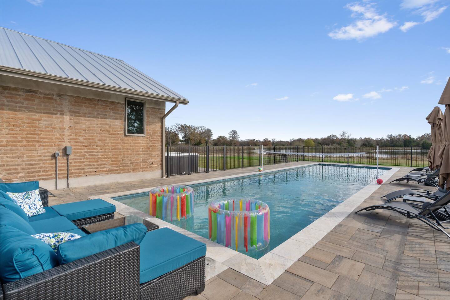 Welcome to Peaceful Waters Retreat, located 1 hour from Austin and 2 hours from Houston. We are Texas' only earthblock retreat center, on 53 acres with private lake & pond. Perfect for large families and retreats, this property is amenity-packed and surrounded by nature for a truly memorable gathering. Amenities include pools, hot tubs, sauna, steam room, gym, game room, and more!